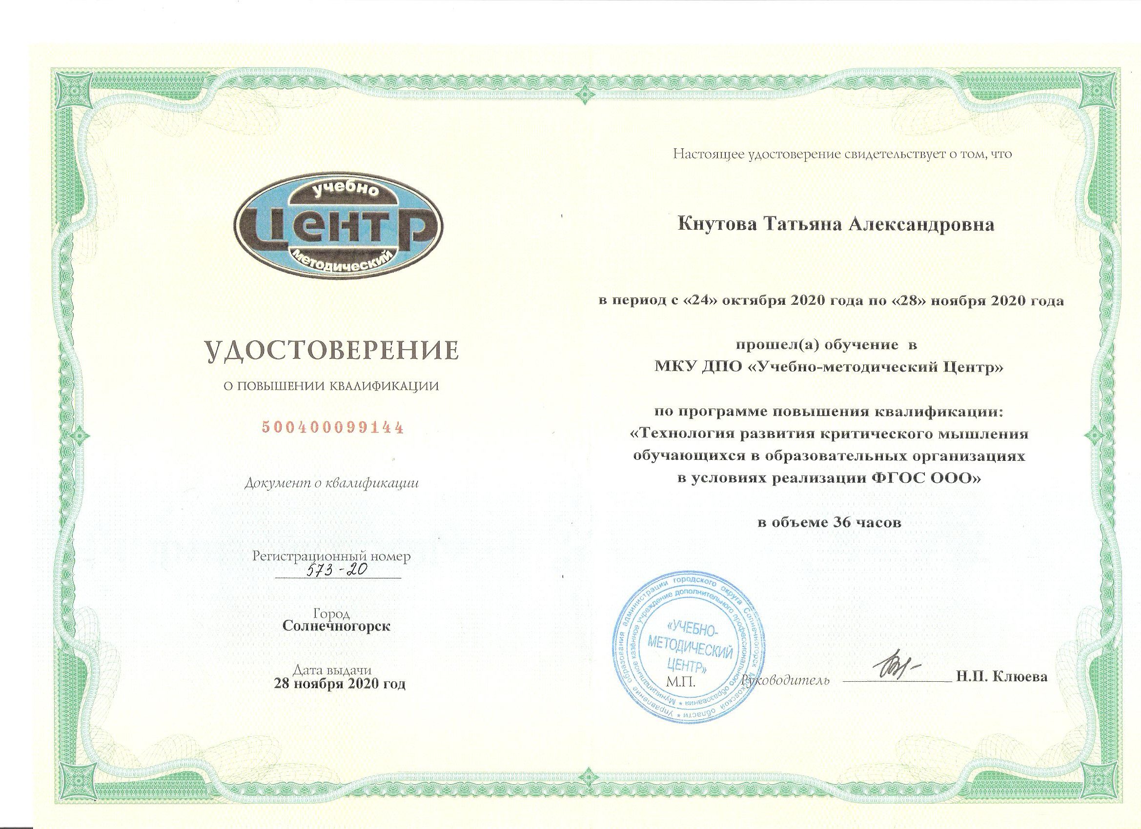 «Новые педагогические технологии: организация и содержание проектной деятельности учащихся», 72 ч., 2011г.