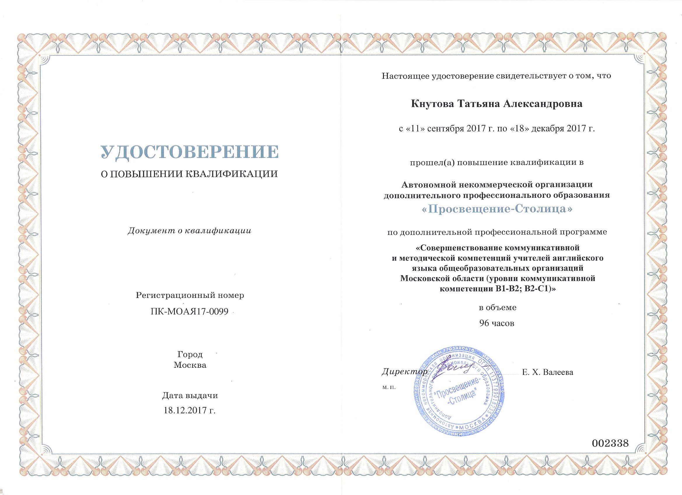 «Актуальные проблемы развития профессиональной компетентности учителя иностранного языка (в условиях реализации ФГОС)», 72ч., 2013г.